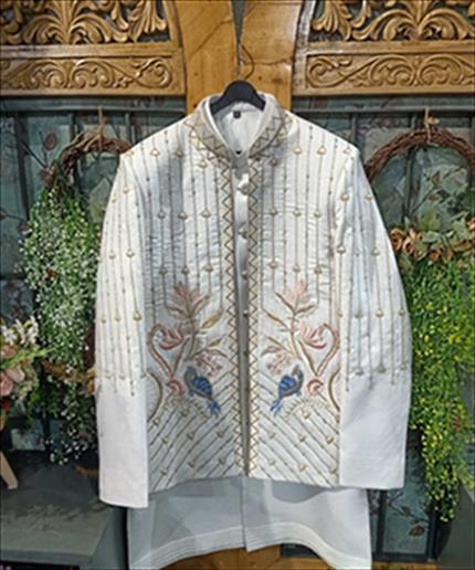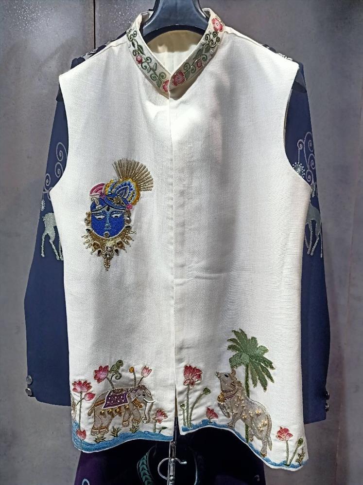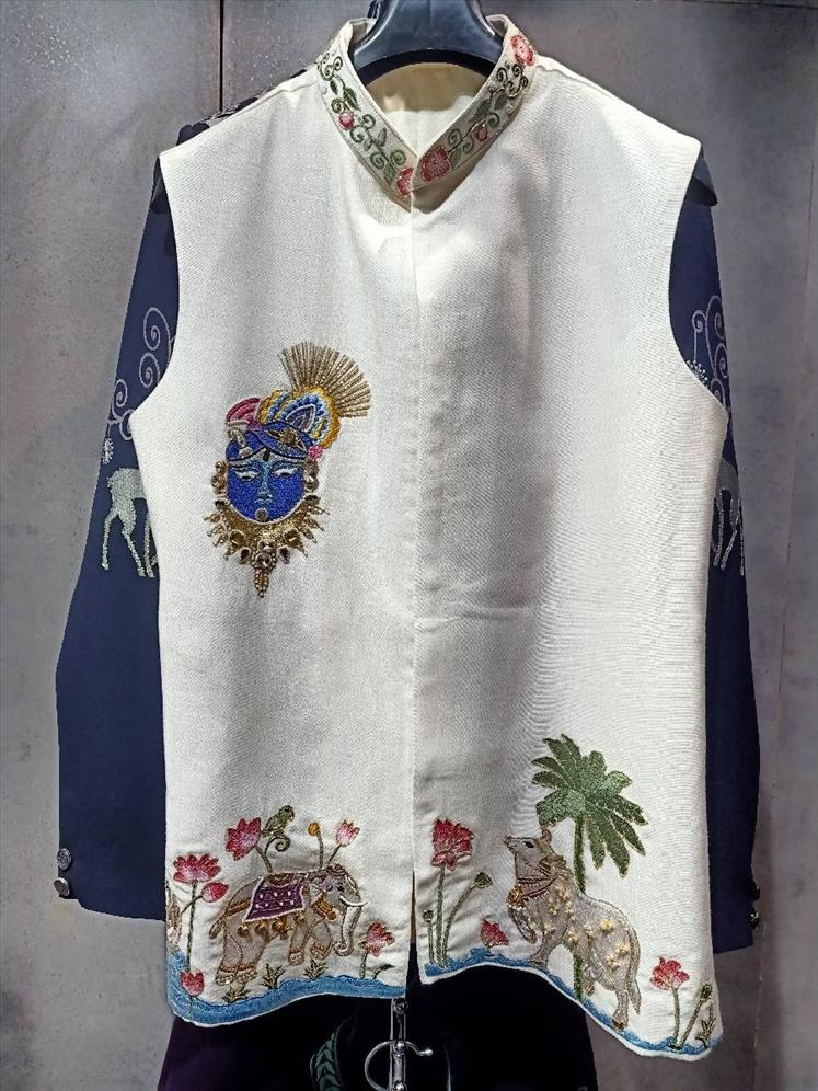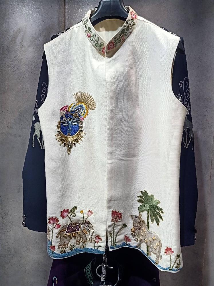 256 of white shrinathji work coti kurta